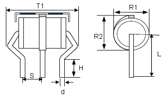 "83F" (No lead type) | ![]() | R1=8.1±0.3 R2=9.8±0.4 T1=13.4+0.8/-0.5 L=7.5±0.5 S=4.4±0.4 d=1.0±0.05 H=4.5Min. |