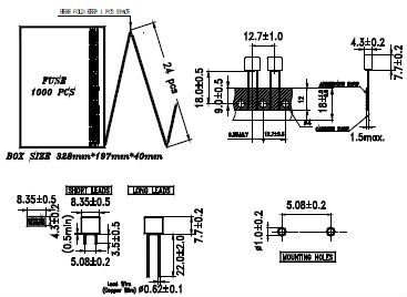 CCC CQC PSE PCB Radial Leaded Box Shaped Slow Blow Miniature Fuse MST 002 2A 250VAC 300V 400V 8.35x7.7mm Images |